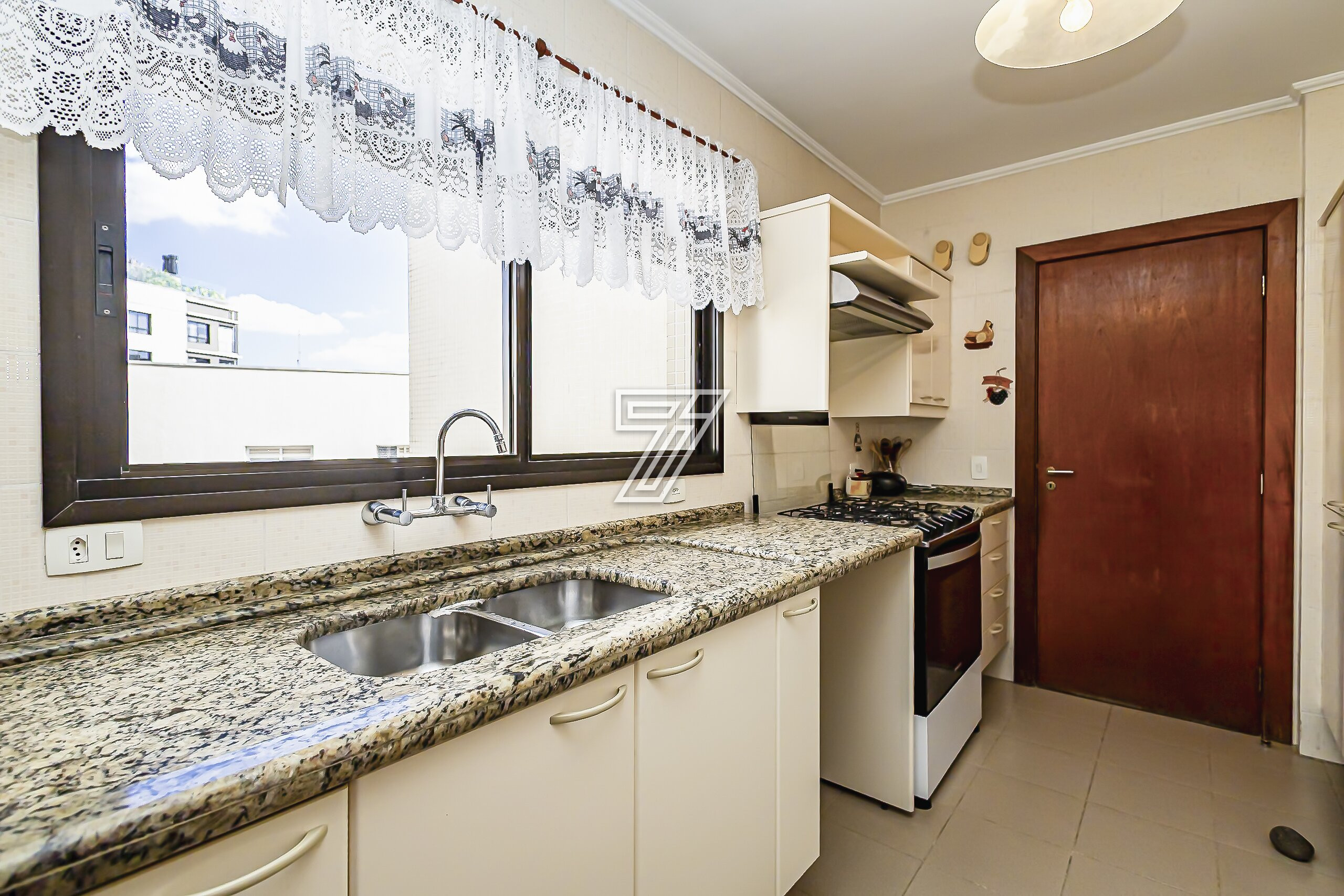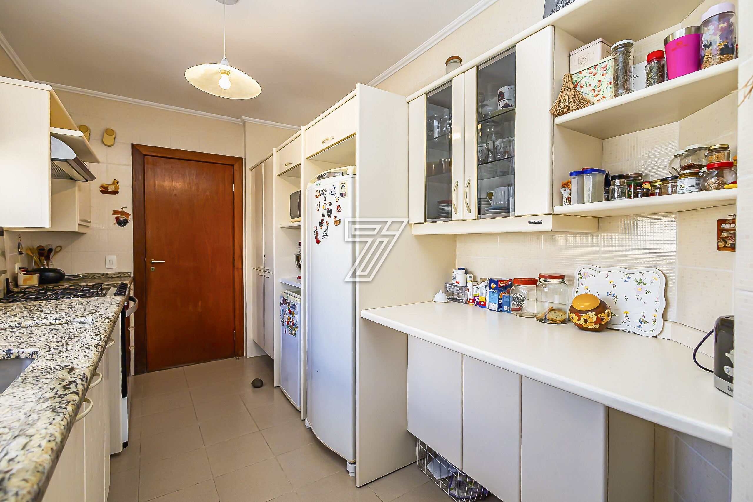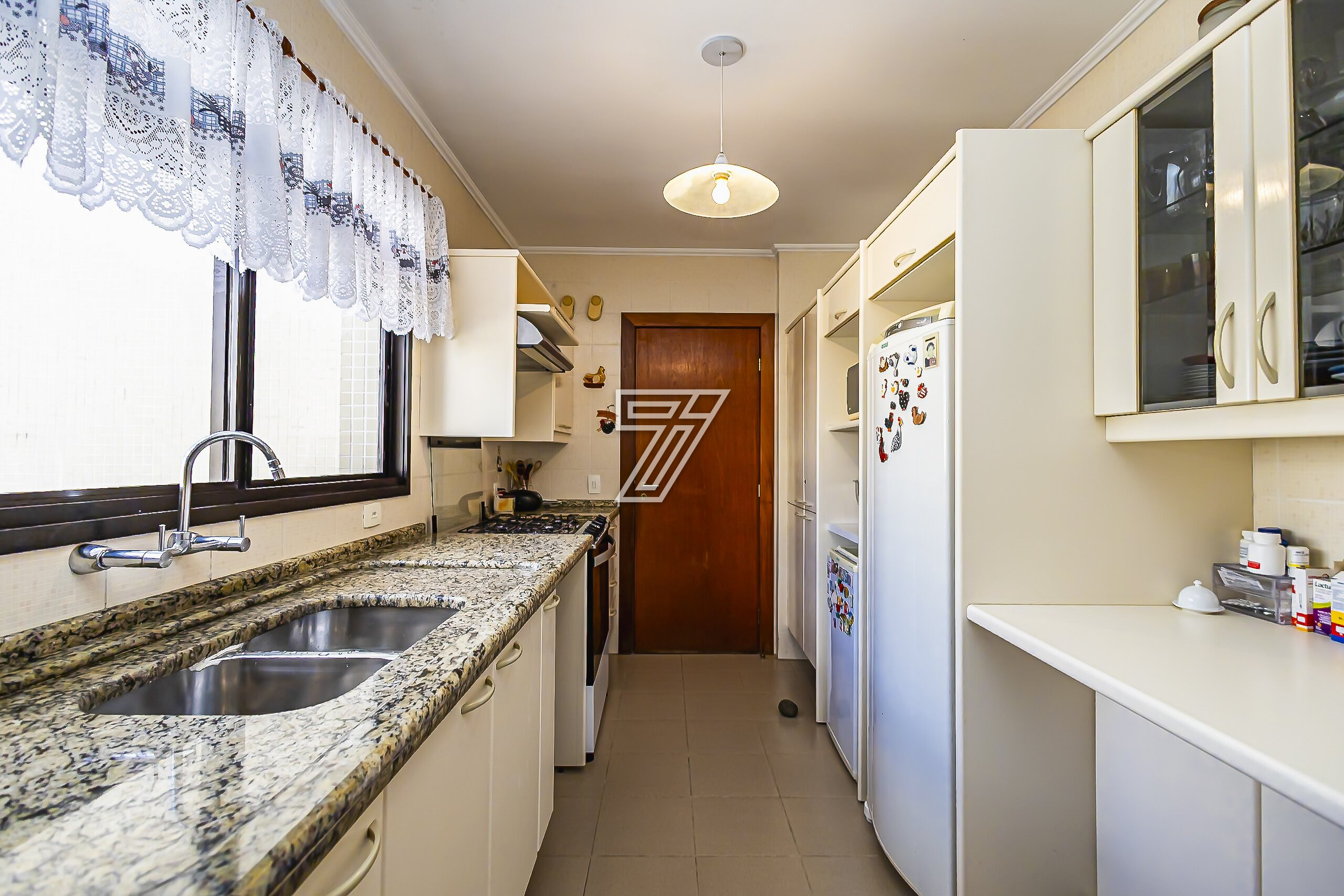 Tem cozinha, com janela ampla, área de serviço separada e dependência completa de empregada, com armários embutidos.
