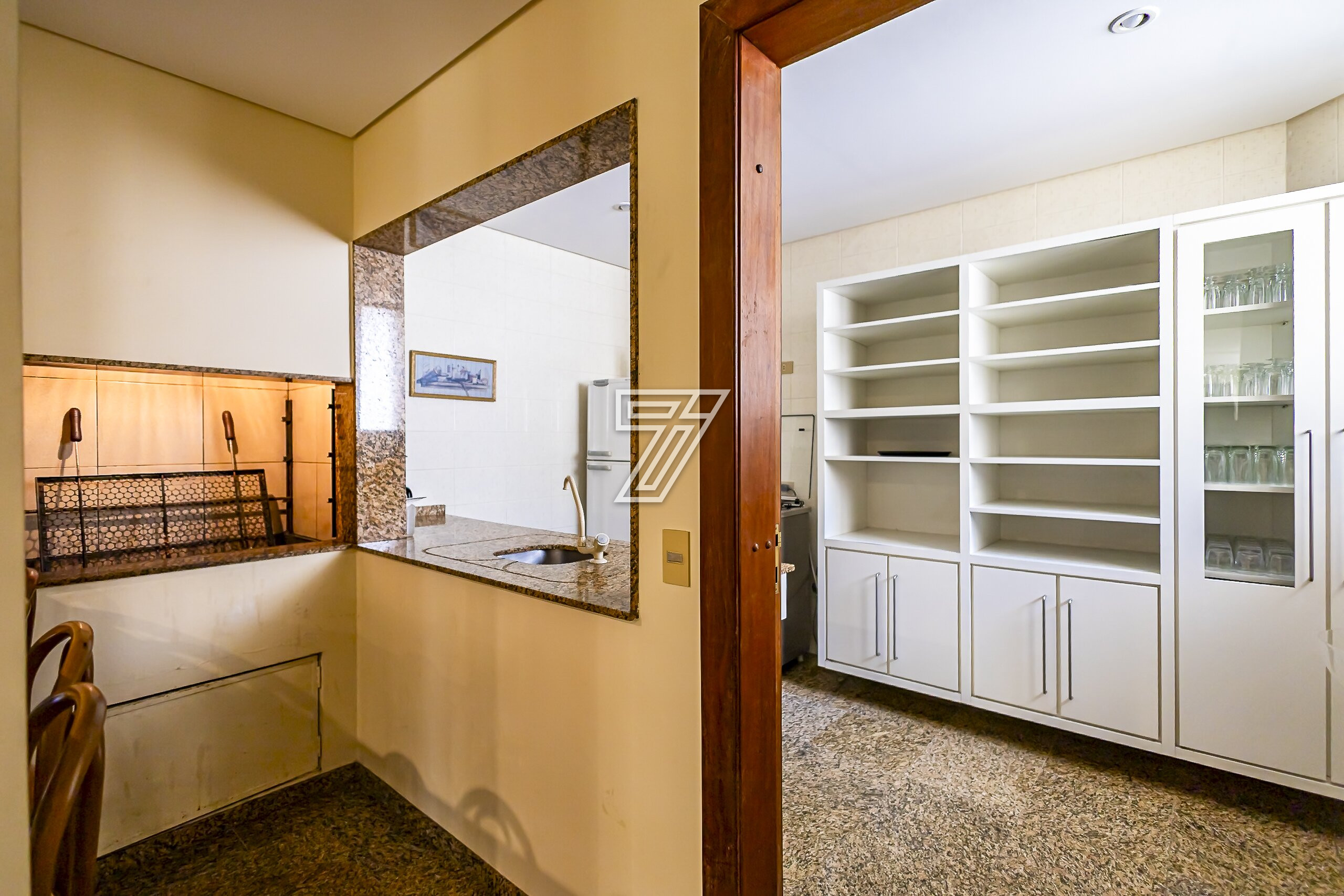 A planta original do apartamento era composta por 4 quartos,   sendo que 1 dos quartos foi integrado à copa, onde há churrasqueira a carvão, criando assim estar íntimo e aconchegante.